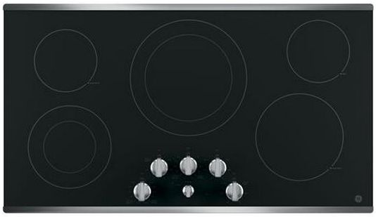 GE® 36" Electric Cooktop-Stainless Steel on Black with 5 burners, melt setting and keep warm settingRead More