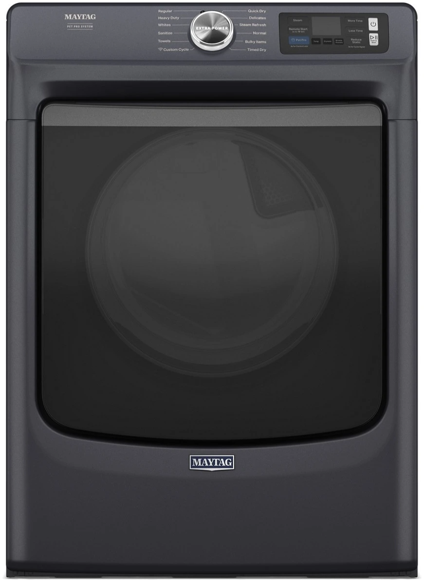 The Maytag® Pet Pro dryer traps and removes loads of pet hair from clothes. The Pet Pro option lifts and captures pet hair from clothes on select cycles and traps it in the lint trap. Extra Power boosts drying power to get thick fabrics drier the first time, while Advanced Moisture Sensing helps evenly dry loads.Read More